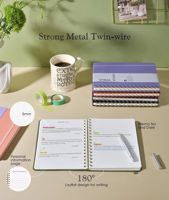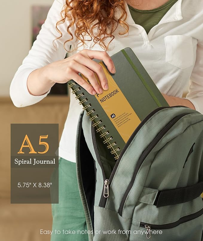 Dotted Spiral Journal Notebook, A5 Hardcover Spiral Journals for Women Men, 100 GSM Dot Grid Paper Notebooks, 150 Pages Spiral Bullet Dotted Notebook for Writing Note Taking 5.75" x 8.38" Olive Green