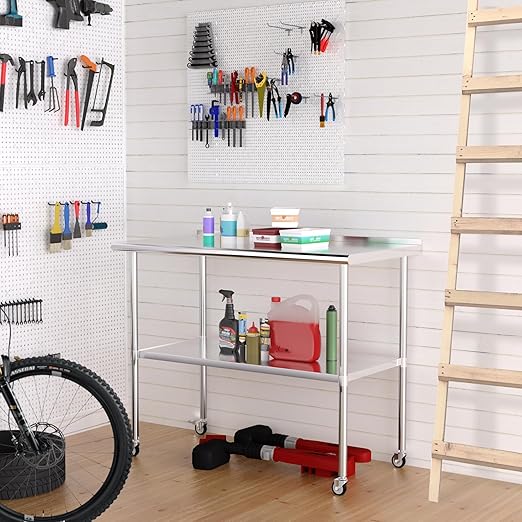 - Sturdy and Reliable Build: Measuring 48x24x34 inches, this stainless steel table offers ample workspace with an adjustable undershelf, support up to 480 lbs on the table and 380 lbs per shelf, perfect for versatile storage needs