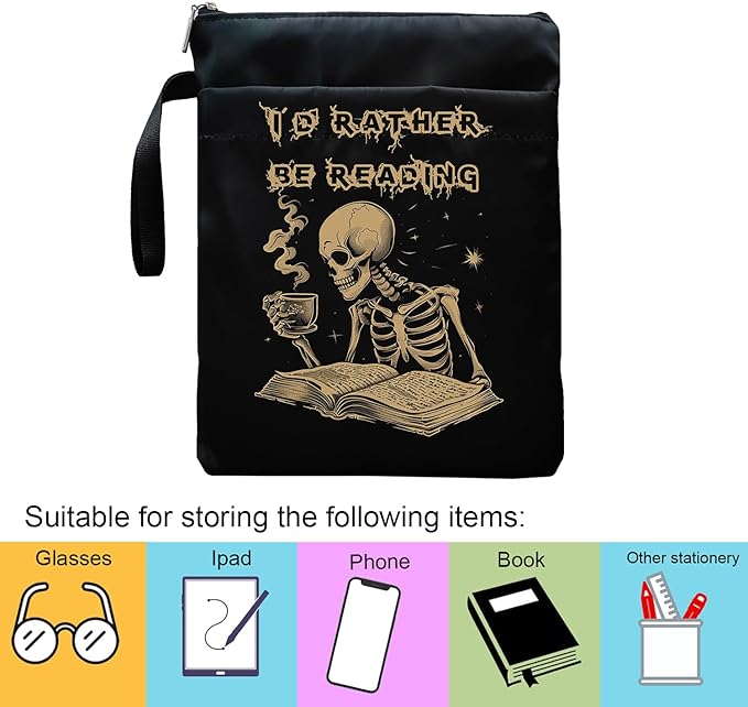 Book Sleeve, Book Sleeve with Zipper, Book Sleeve for Book Lovers, The Reader Tarot Card Book Sleeves, Book Pouch Kindle Protector, Gifts for Women Teacher Librarian Bookworm Bookish (Black-E, Large)