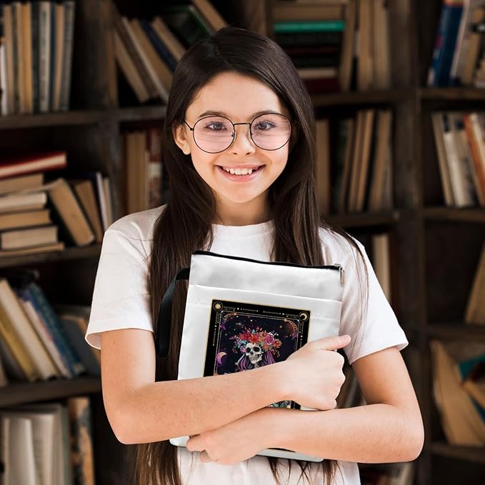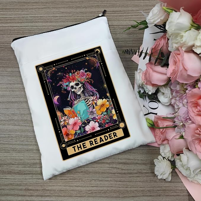 Book Sleeve, Book Sleeve with Zipper, Book Sleeve for Book Lovers, The Reader Tarot Card Book Sleeves, Book Pouch Kindle Protector, Gifts for Women Teacher Librarian Bookworm Bookish (White-A, Large)