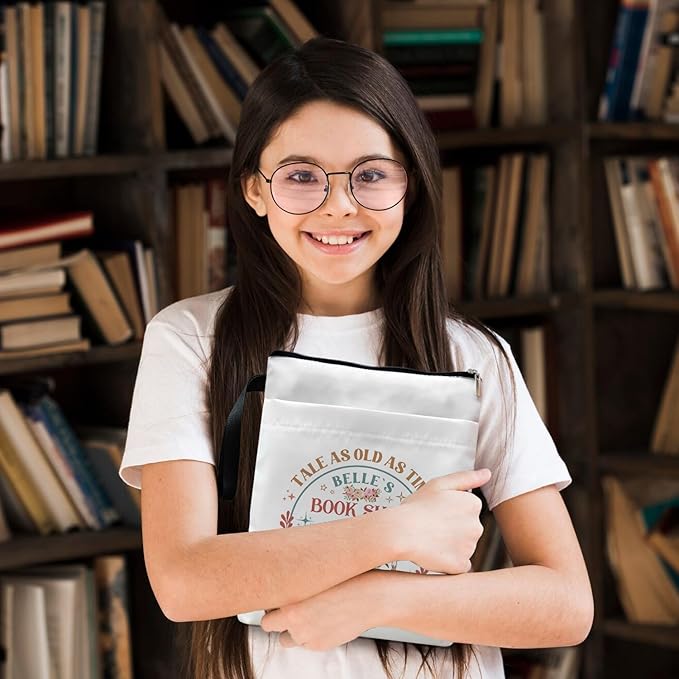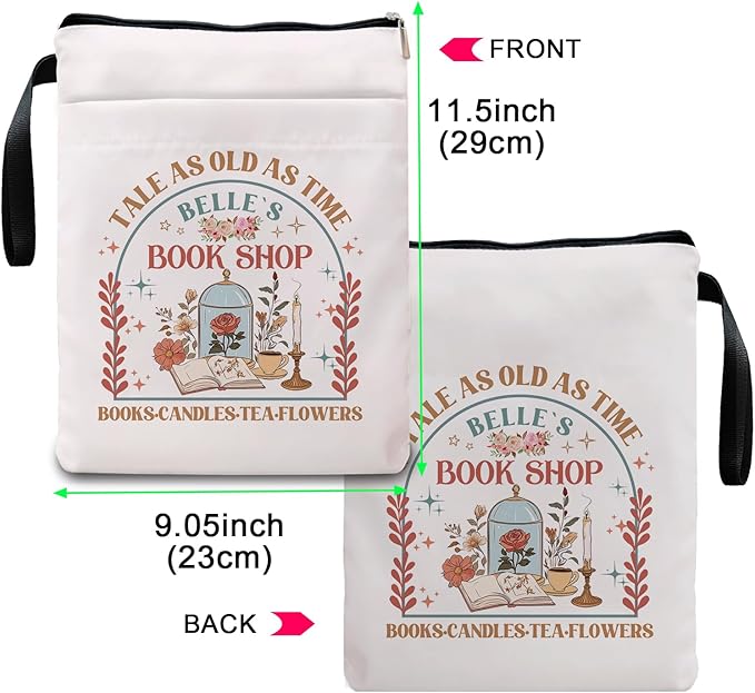 Tale As Old As Time Belle's Book Coffee Book Lover Book Sleeve, Book Covers with Zipper, Book Lovers, Book Pouch Kindle Protector, Gifts for Women Teacher Librarian Bookworm Bookish (White-A, Large)