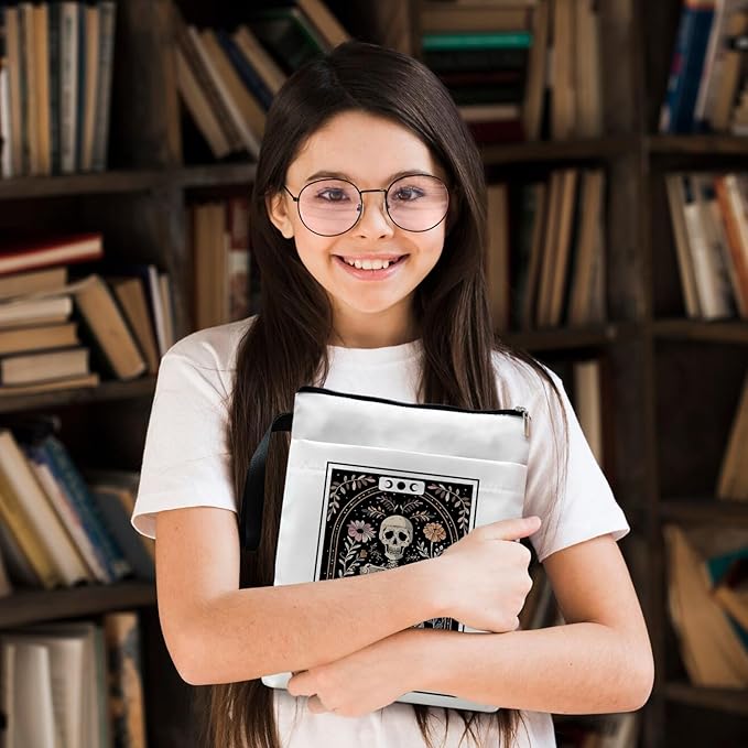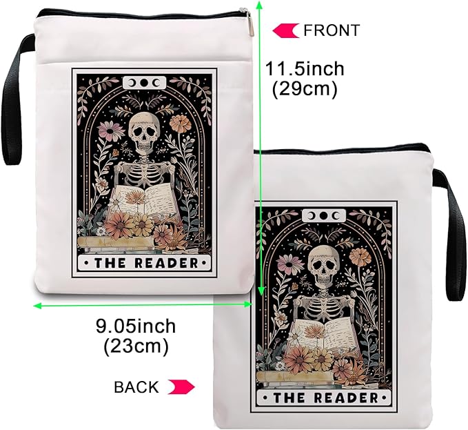 Book Sleeve, Book Sleeve with Zipper, Book Sleeve for Book Lovers, The Reader Tarot Card Book Sleeves, Book Pouch Kindle Protector, Gifts for Women Teacher Librarian Bookworm Bookish (White-B, Large)