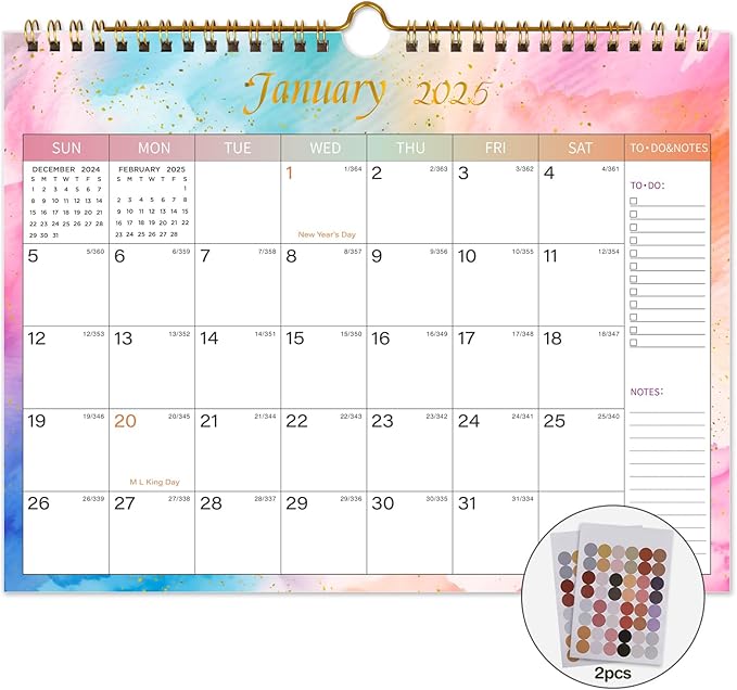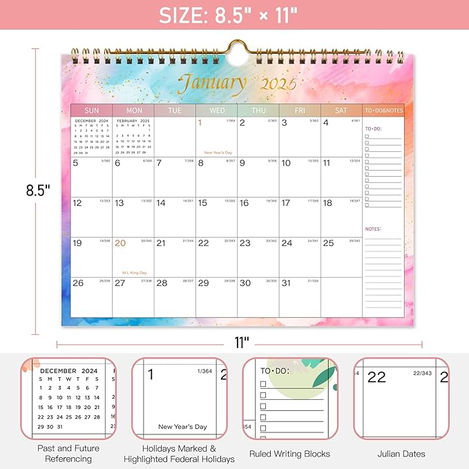 Lbylyhxc 2025-2026 Calendar - Includes January 2025 to June 2026 -18 Monthly Wall Calendar 2025-2026, 11 x 8.5 Inches.Thick Paper with Julian Dates and Block for New Year and Christmas Presents (Wall Calendar Colorful)