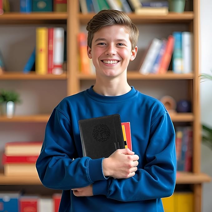 - Hardcover Leather Journal:The hardcover leather journal is A5 size, 5.7 x 8.3 inches, 9/32 standard college ruled. The cover is made of waterproof and stain-resistant faux leather, which is soft and comfortable to the touch.