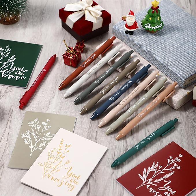 - Motivational Quotes and Aesthetic Designs: these small note pads and motivational pens are designed with different inspirational quotes, these motivational words can help boost confidence and empower people