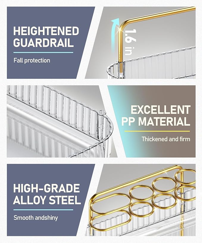 - Sturdy and Durable: Crafted from metal brackets and premium acrylic, this bathroom organizer countertop is waterproof, rust-resistant, and easy to clean. Non-slip feet and protective guards ensure stability and safety on any surface.