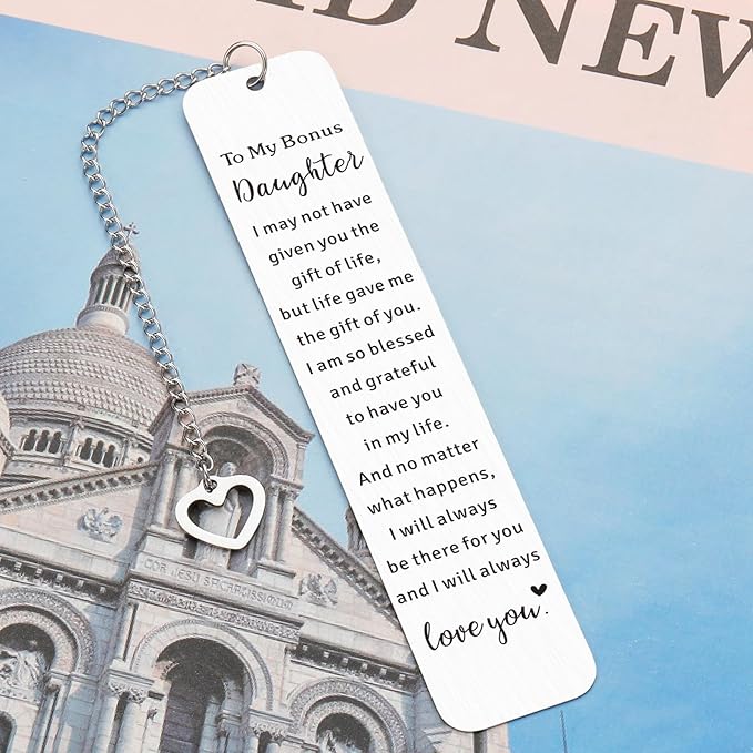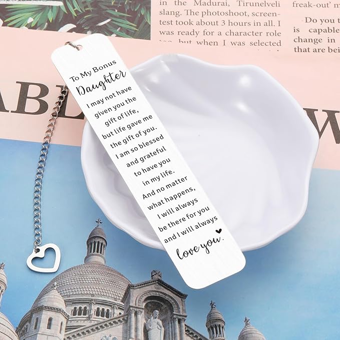 - 【Bonus Daughter Gifts】 This bookmark engraved with warmhearted word. You can send it to goddaughter, stepdaughter, daughter in law, bonus daughter, unbiological daughter. It can be good christmas gifts for bonus daughter, stocking stuffers for bonus daughter, adoption finalization gifts, adoption gifts for daughter, the new daughter gifts, stepdaughter gifts from mom, 16th 18th 21st birthday gifts for bonus daughter, bonus daughter birthday gifts,unbiological daughter valentines gifts.