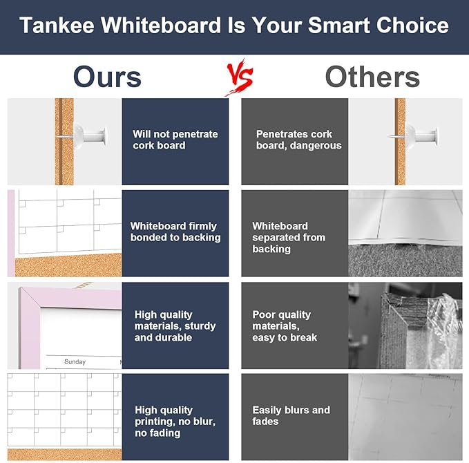 - 2-in-1 WHITEBOARD CALENDAR & CORKBOARD - This wall dry erase calendar can be used as a monthly and weekly planner board, memo board, bulletin board or presentation board. The bottom cork board is perfect for pinning notes, pictures, to-do lists and class schedules.
