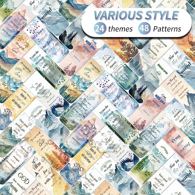 48 Piece Bible Verse Magnetic Bookmarks - Christian Scripture Inspirational Book Marks with Boxes - Religious Motivational Book Marker Prayer Page Clips for Women & Men Reading Gifts(Mountains Style)