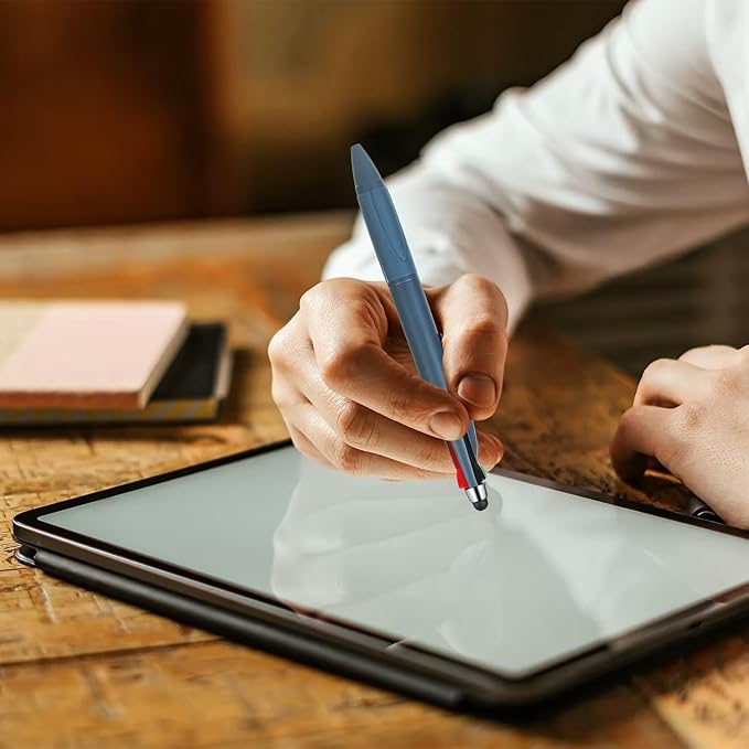 - 【Stylus Pens】The new design gives this stylus pen more possibilities. One end features an ultra-sensitive stylus for touch screens, which is compatible with tablets, cell phones, computer screens. Additionally, the other end is outfitted with a premium 4 colour ballpoint pen for convenient use. So you can use it to take notes not only on paper, but also on your tablet screen. Moreover, our pen with stylus tip without charging will save a lot of trouble for you.