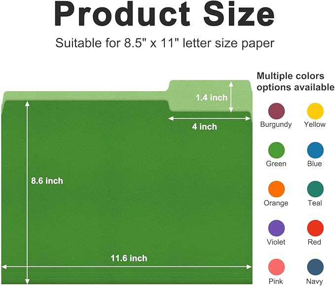 - 1/3 Cut Tab in Three Positions: Navigate through your files seamlessly with the 1/3 cut tab feature. This thoughtful design allows easy labeling, making it simple to categorize and retrieve documents efficiently.