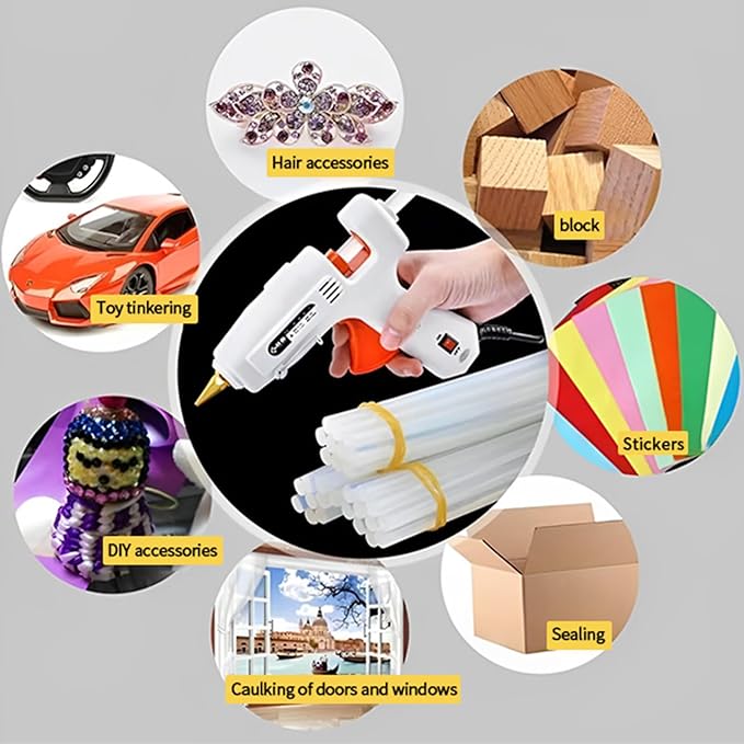 - VERSATILE APPLICATION: Our hot glue sticks are designed to bond seamlessly with a wide variety of materials, including paper, wood, metal, plastic, fabric, ceramic, foam, and more. Perfect for all your DIY, crafting, and repair needs at home, school, or the office.