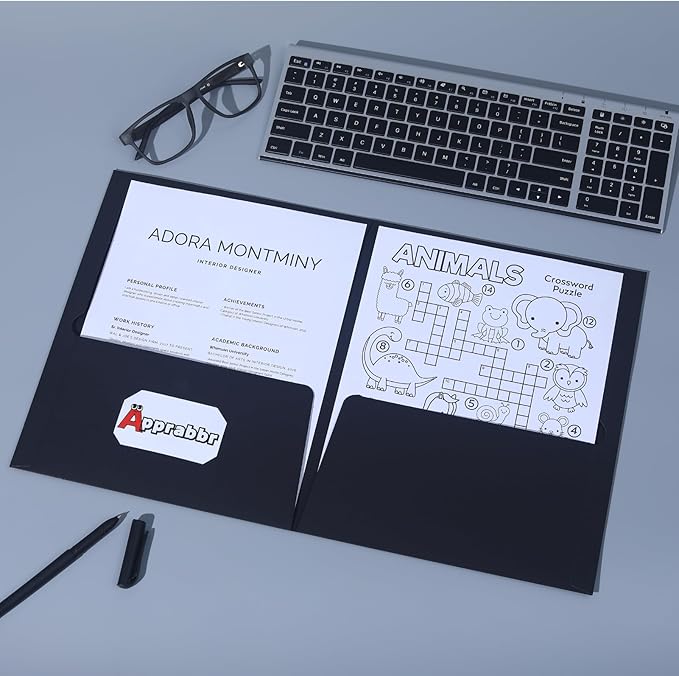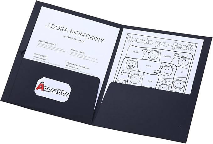 - 2 Pocket File Folder: The folder's black surface offering a clean, professional appearance. Enhanced two deep pocket and a die-cut business card slot in left pocket for your convient use!