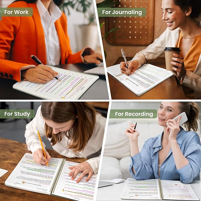 - Large A4 Spiral Notebook: Measuring 8.5" x 11" with standard 7mm college-ruled lines, this large A4 notebook offers ample space for detailed note-taking, journaling, and task management. Its spacious pages are perfect for capturing ideas, organizing thoughts, and managing projects—whether at work, school, or in your home office.