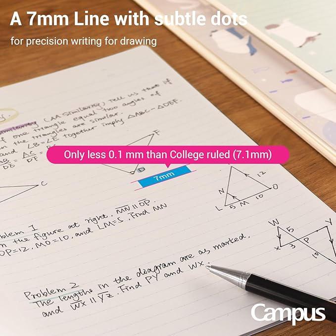 - Functional Dotted Line: Regular 7mm line spacing suitable for most work or study scenarios. The dots on the line are perfect for precise note-taking, detailed math or chemistry chart diagrams, artistic sketches, and student use. The 7mm line sapcing of Kokuyo ring notebook is only 0.1mm less than college ruled, the difference is small enough to be ignored
