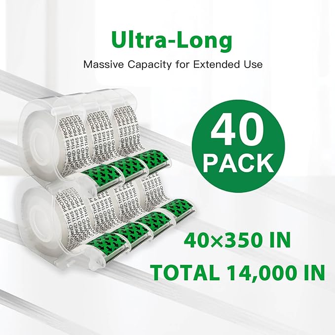 - ๐ฃ๐ฎ๐ฐ๐ธ๐ฎ๐ด๐ฒ ๐ฐ๐ผ๐ป๐๐ฒ๐ป๐๐: You are getting total of 40 packs Two Sided Tape with Dispenser. Each pack holds 0.5 x 350 inches double sided tape, and 1,170 feet length in total.
