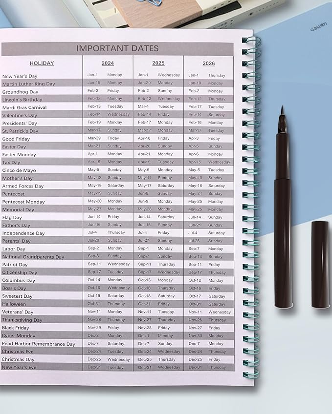 - High Quality Paper - 2024-2025 monthly planner uses 100g/sm paper which is thicker than normal, can to avoid ink through and feathering without any fear of ink feathering and seepage.