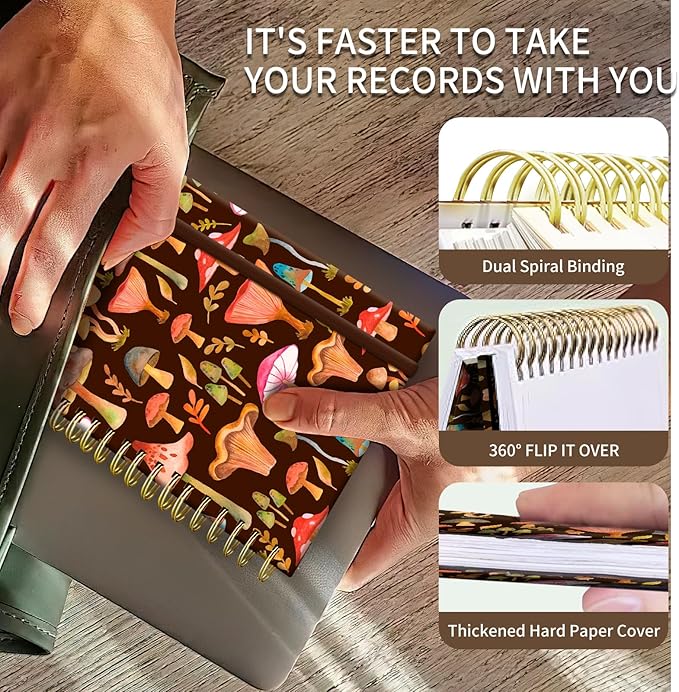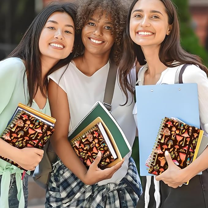 Spiral Journal Notebook, A5 Cute Notebooks for Women Men, College Ruled Hardcover Notebook for Work & Note Taking, 60 Pages Double-Wire Journals for Writing Boho Mushrooms