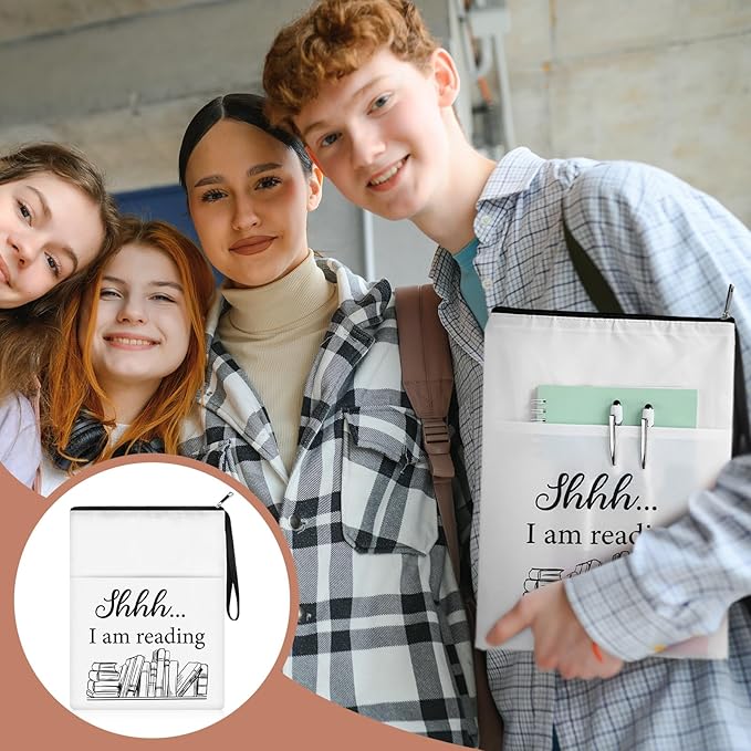 8 Pcs Christmas Book Club Gifts Book Lovers Sleeves Bulk with Zipper and Pocket Book Sleeve Pouch for Book Lovers Librarian Bookish Club Gifts, 11 x 8.7 Inch(Book)