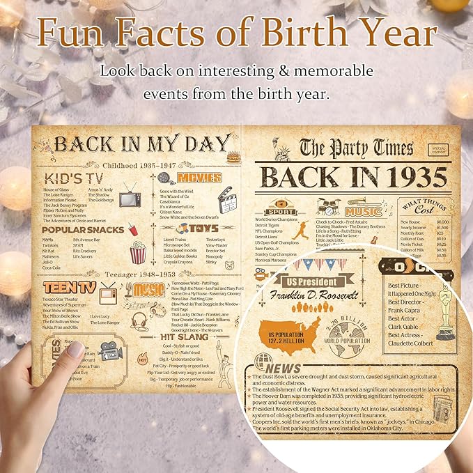 90th Birthday Card for Men Women, Funny 3D Pop Up 90th Birthday Gifts for Grandma Mom Dad, Back In 1935 Happy 90 Year Old Birthday Decorations Cards for Her Him, Classy Vintage