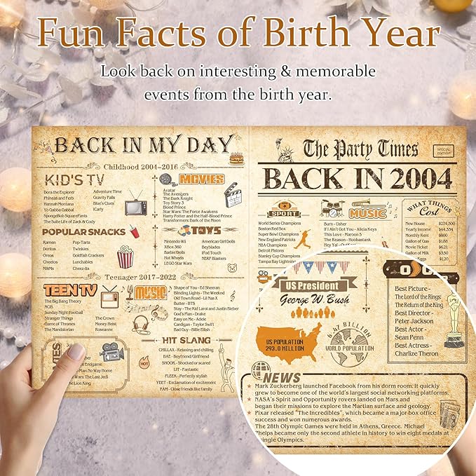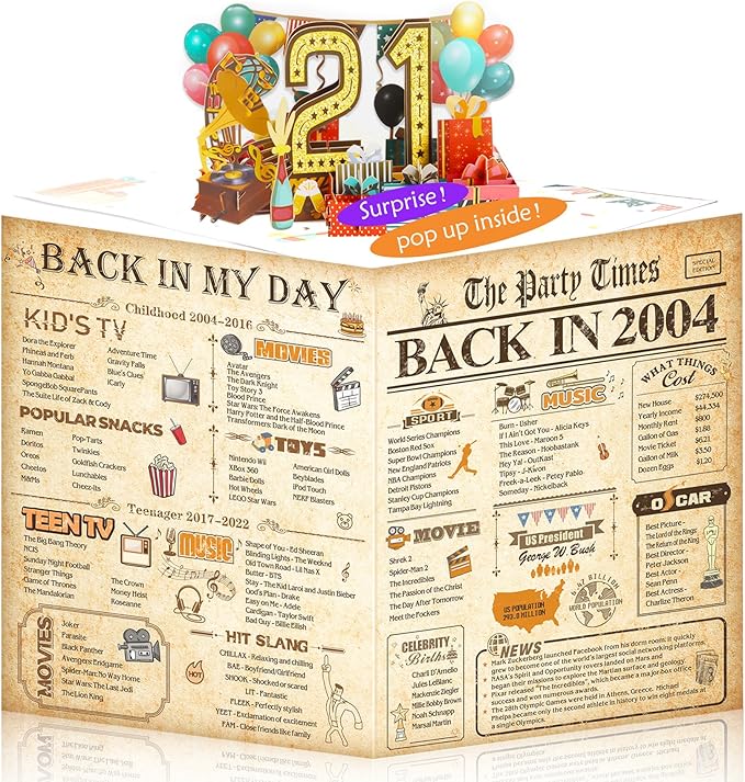 21st Birthday Card for Girls Boys, 3D Pop Up 21st Birthday Gifts Cards, Happy 21 Birthdays Decorations for 21 Year Old Son Daughter, Funny Back In 2004, Classy Vintage