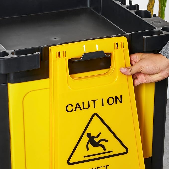 - MAXIMUM EFFICIENCY: With 3 shelves, this commercial cleaning cart offers room for cleaning supplies and equipment, ensuring everything is at your fingertips. Cleanup has never been this easy!