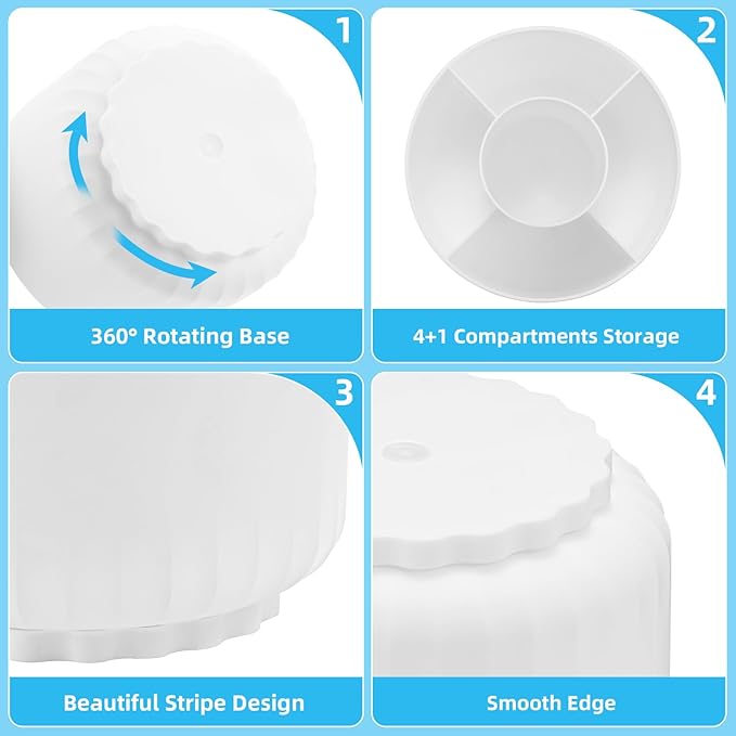 - 【Space-Saving】: The special round design of the organizer was designed to make items easy to reach, even when stored on upper shelves; Divided into 5 compartments, this spinning container makes it easy to separate and store a wide variety of items; Use this convenient storage to keep children's crafting items all in one place; Great for school supplies, Perfect for home or commercial workspaces