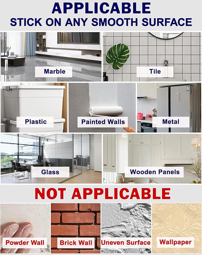 - Strong Adhesion on Multiple Surfaces: Our whiteboard sticker are made with high quality nano adhesive that adheres securely to smooth surfaces such as latex painted wall, refrigerator, wooden cabinet, ceramic tile, glass and metal. This peel and stick whiteboard sticks to a variety of surfaces and won't damage the wall when you remove it, great for home, office and school. Perfect as a white board stick on wall for flexible organization.