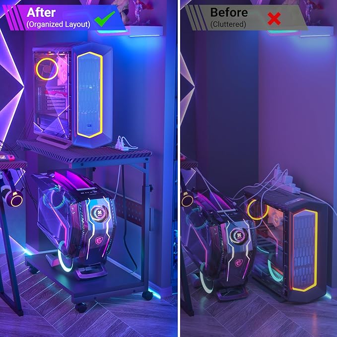 - Exclusive Computer Tower Placement - You no longer have to place your computer tower on the floors or the carpet. This computer power stand makes it more mobile and keeps it elevated from the hardwood floors and the dust/fur that tries to accumulate in and around components left on the floor. And you don't need to worry about the deeper carpet that would choke out the underside airflow of the computer tower.
