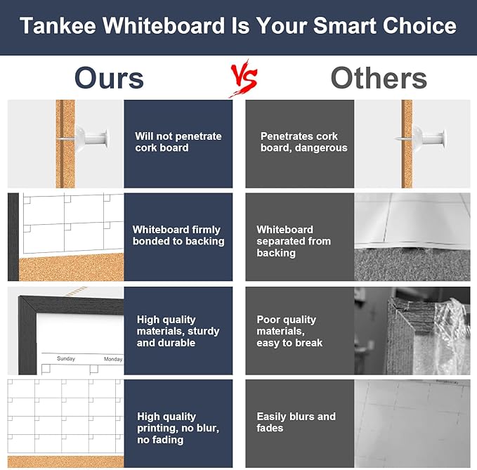 - 2-in-1 WHITEBOARD CALENDAR & CORKBOARD - This wall dry erase calendar can be used as a monthly and weekly planner board, memo board, bulletin board or presentation board. The bottom cork board is perfect for pinning notes, pictures, to-do lists and class schedules.
