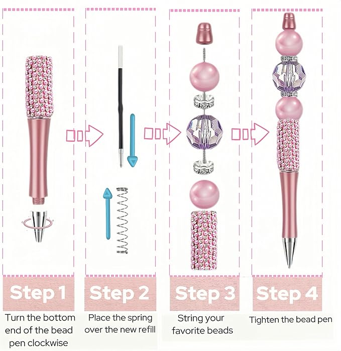 - Easy to use*The bead pen is very easy to use, just rotate the diamond part to open and write smoothly. If you want to replace the pen refill, rotate the pen head, remove the pen refill, and replace the pen refill. If you want to add DIY beads, rotate the top to add beads and enjoy DIY design. Easy and fast to operate, it is the ideal choice for most people