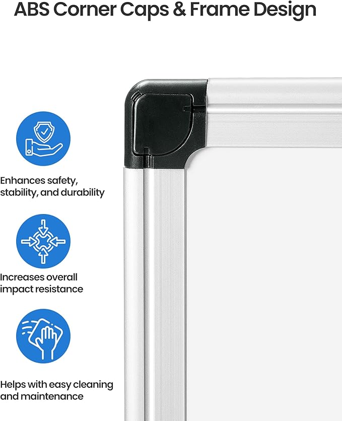 - Safety And Stability: The VUSIGN whiteboard's silver aluminum frame helps prevent scratches and enhances its stability. With the ABS corner design and screws underpinning the corners, it ensures the safety of whoever is using it