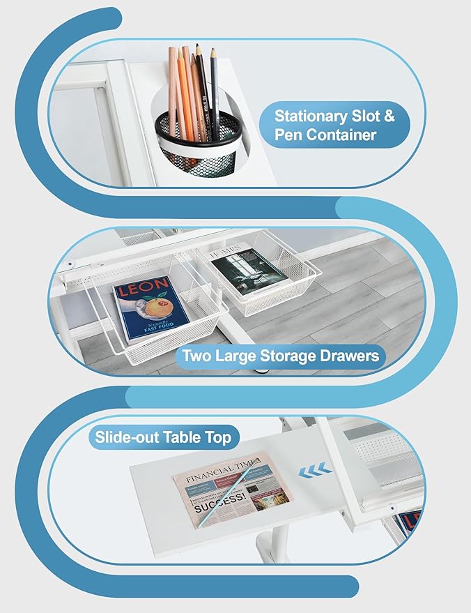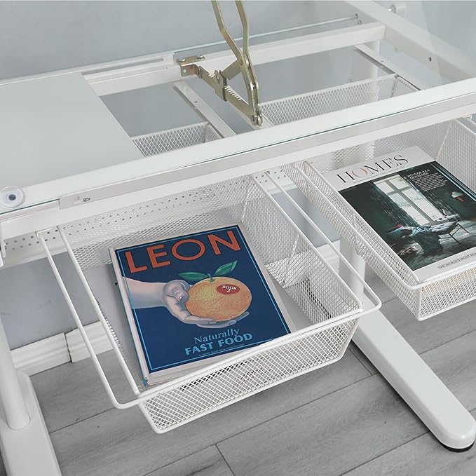 - Extended Workspace & Functionality: The desk also features an E0-grade MDF extension that pulls out to hold books or a laptop. With metal drawers and storage strips, you’ll have plenty of room for your tools and supplies. This multi-functional drafting desk is perfect for artists, designers, or anyone who loves to create!