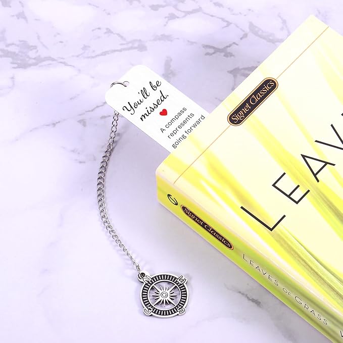 - Coworker Leaving Gifts for Women--Engraved with"you'll be missed. A compass represents going forward in a new direction and starting a new chapter in life. May you proud of the work you have done, the person you are, and the difference you have made.Enjoy the next chapter."Leaving is not an end, but the beginning of a new voyage. This bookmark, like a mark on a navigation chart, guides you to continue exploring in the ocean of knowledge, bravely moving forward.