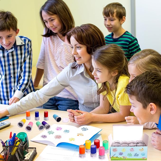 Teacher Stamps Self Inking for Classroom Rubber Stamp for Grading Homework Test Motivation Students Behavior Reward Supplies 8Pcs
