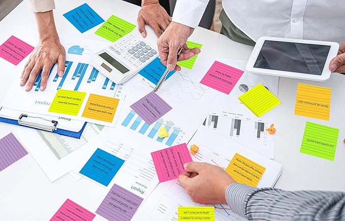 (12 Pads) Lined Sticky Notes 4x4 in Post, 6 Bright Colors with Lines Self-Stick Note Pads it, Strong Adhesive