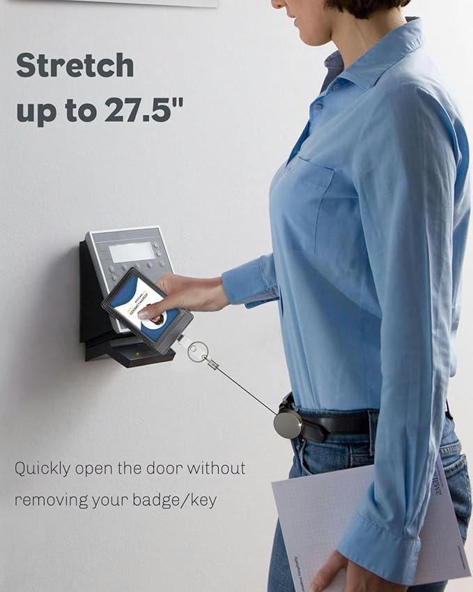 - Stronger Nylon Rope: The well-braided nylon rope can stretch up to 27.5 inches, making it easy to open the door without removing the badge or key. Quickly swipe your card to make punching in and out faster