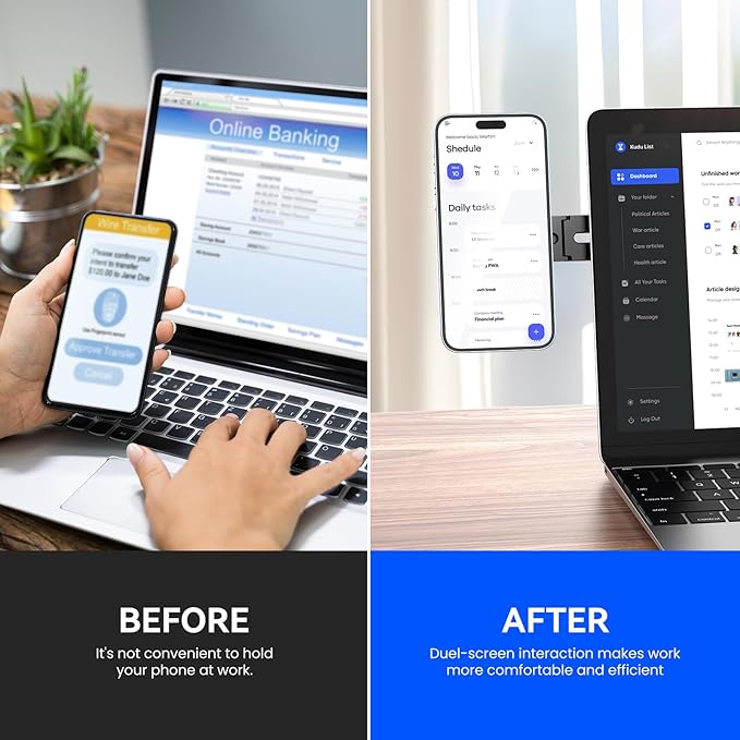 - Adjustable Magnetic Phone Holder: The new upgraded adjustable magnetic phone holder allows you firmly attach your phone to any laptop, desktop monitor, computer monitor for Tesla. You can easily view text messages or answer calls at work, enjoy double screen interactive, improve office efficiency.