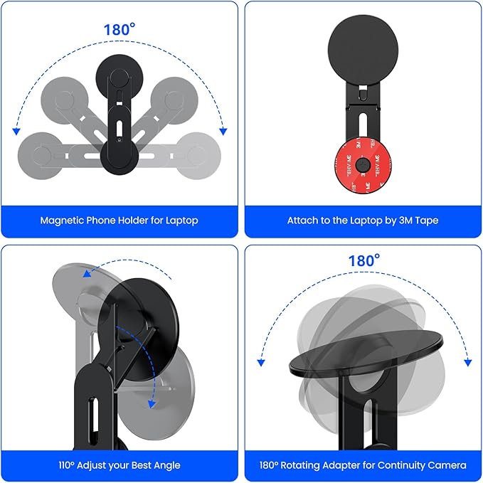 - Light and Compact: Magnetic phone holder for Laptop is made of lightweight aluminum alloy material. It has a small volume that saving space and making it easy to carry anywhere. It is the perfect choice for travel, meetings, analysis, business trips and so on.