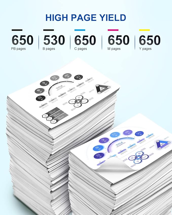 - High Page Yield: Up to 500 pages per 410xl black remanufactured for epson 410xl black, 650 pages per 410xl photo black ink cartridges, 650 pages per 410 color ink cartridges(cyan/magenta/yellow), at 5% coverage of A4 Paper