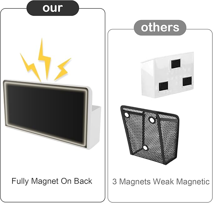 - Upgraded Magnetic Pen Holder:Magnetic marker holder adopts divider design,there are 2 divider.Magnetic dry erase marker holder's dimensions is 8.27L x 2.05W x 4.33H inches(Long Style),you can choose your storage Organizer of different sizes as you like.
