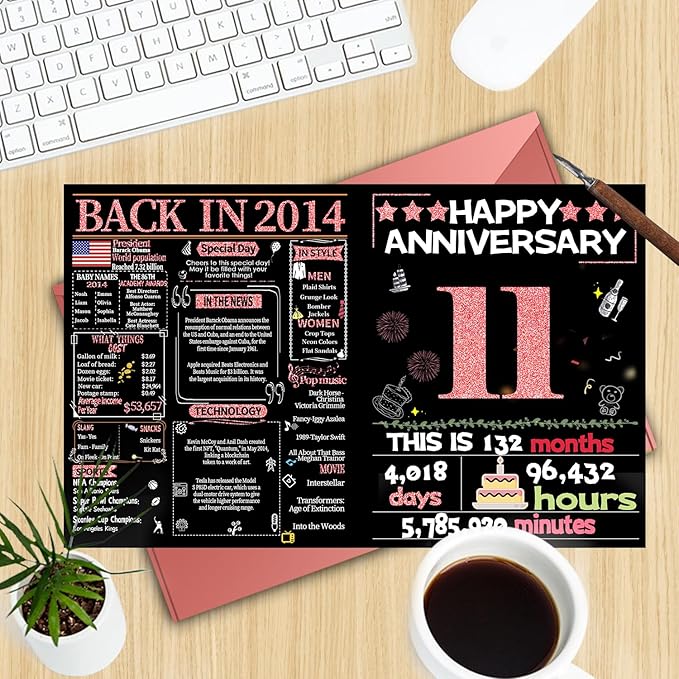 - 【Perfect 11th Anniversary Card】This anniversary card is ideal for your women, wife, or any couple celebrating 11 years together. A great way to express your love for any wedding anniversar, this card serves as a lasting reminder of your memories on your 11th anniversary.