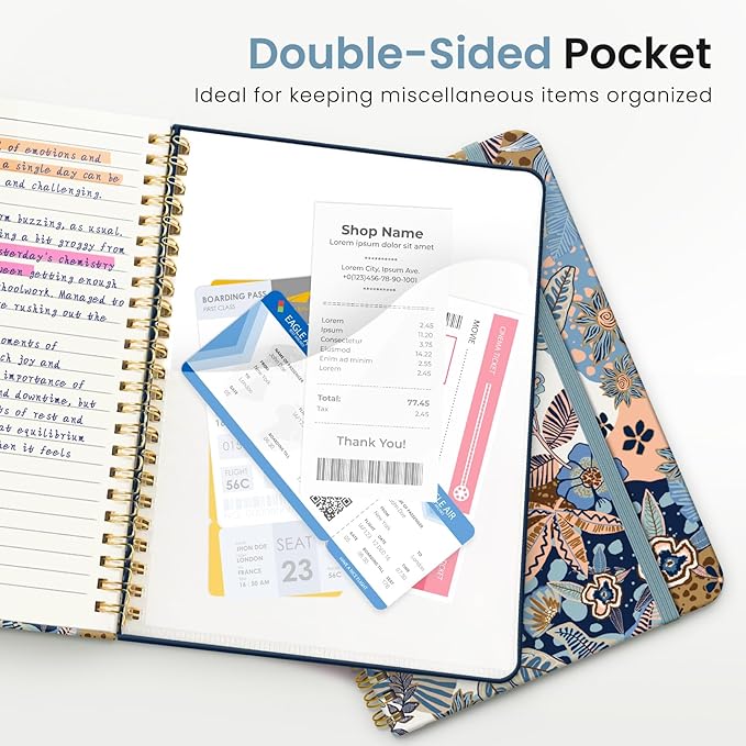 - Streamlined and Practical Design: Featuring 140 lined pages and a 6-page blank table of contents, our notebook provides generous room for note-taking and effortless referencing. An inner pocket safeguards miscellaneous items, while an elastic closure band ensures the notebook remains securely closed when not in use.