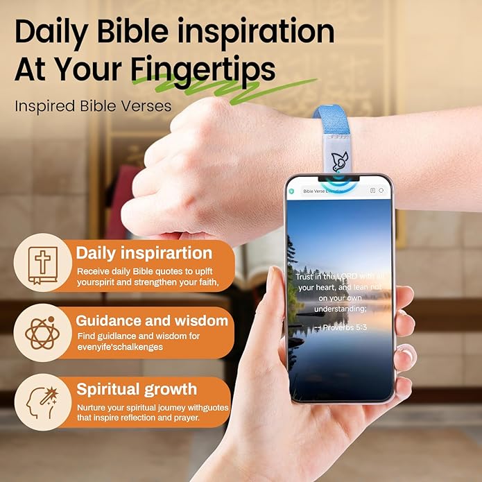 - INNOVATIVE DESIGN: Daily bible verse bracelet is made of high quality polyester elastic material, the bracelet can be used to access Bible verses anytime and anywhere via NFC, the elastic process can be adjusted to fit comfortably, it is waterproof, sweatproof and washable