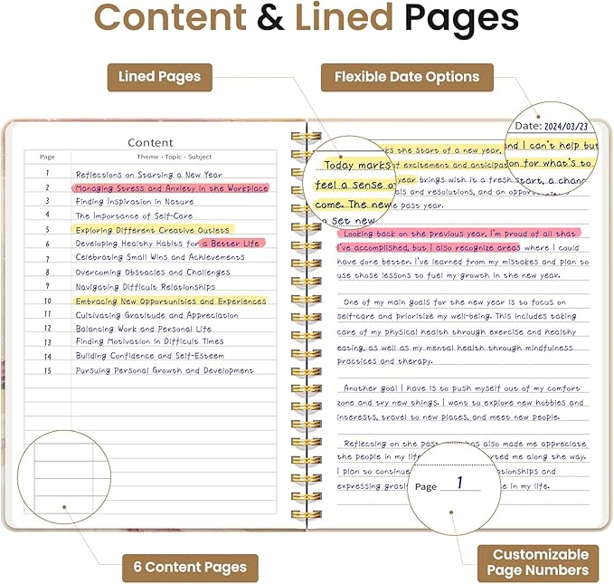 - Organized and Functional Design: With 140 lined pages and a 6-page blank table of contents, our notebook offers ample space for note-taking and easy referencing. An inner pocket keeps miscellaneous items secure, and an elastic closure band ensures the notebook stays closed when not in use.