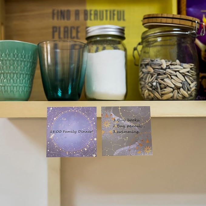 - 【Wide Use】: These sticky notes can be used to write notes, memos, plans, shopping lists, to-do lists, etc. to help remind you to do important or trivial things that are easy to forget; you can stick them to many items with smooth and clean surfaces, such as books, notebooks, computers, whiteboards, windows, walls, doors, refrigerators and so on.