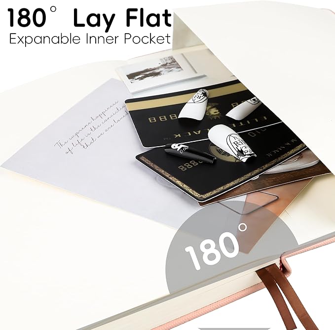 - 🗃️180°Lay Flat Design: The classic lined notebook can be laid flat and fully spread out 180° without hindering your writing, widened elastic closure band, which can be closed tightly to protect your contents, making writing easier for both right and left-handed users, which make the best use of your writing space.