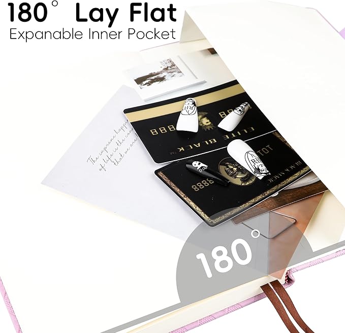 - 🗃️180°Lay Flat Design: The classic lined notebook can be laid flat and fully spread out 180° without hindering your writing, widened elastic closure band, which can be closed tightly to protect your contents, making writing easier for both right and left-handed users, which make the best use of your writing space.