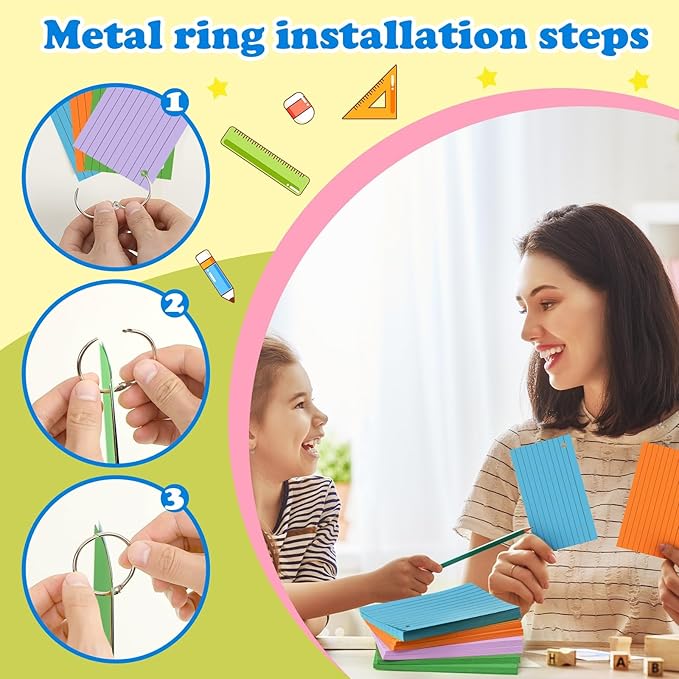 - Package Includes: You will get 200Pcs Colored Index Cards with 4 Rings, including 4 different colors, 50 pieces of each color