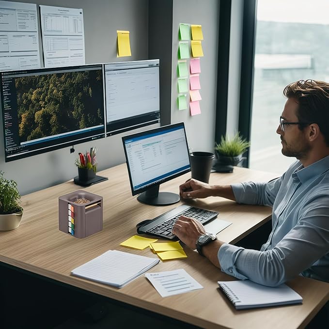 - 5-in-1 Design: The sticky note sticker holder adopts a 5-in-1 design, which integrates 4 types of note stickers and 1 magnetic absorber case. The fine teeth on the edges allow you to easily remove sticky notes from different directions; The magnetic design on the top securely attaches a paper clip or gadget, allowing you to work on your files on the go